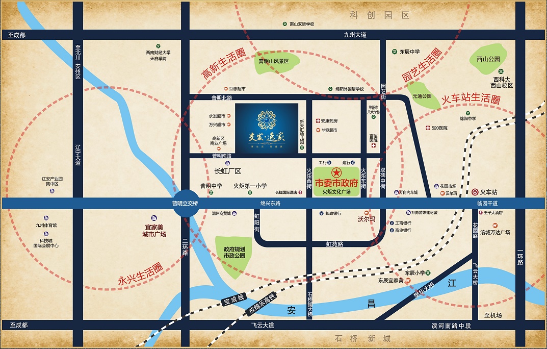 銷售中心地址:綿陽市高新區(qū)普明南路128號 逸家熱線:0816--2660999