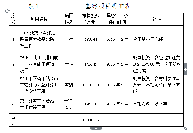 本次委托審計的四個項目基本情況如下: